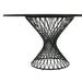 • This circular dining table sits atop an elegant circular wire base and coated cast-iron foot ring
