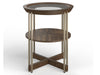 With a nod to architectural and Art Deco influences and the Elora table group makes a statement in bespoke sophistication. Its distinctive look combines a modern mix of materials and seamlessly blends wood and glass and metal to brilliant effect. Each table features a wood-framed and clear glass top that creates a window to its stunning wood base and elegant metal legs. A warm Walnut finish highlights the rich grain patterns showcased by its hickory veneers and is paired with Tarnished Silver metal legs. Place these stunning tables anywhere you need a bit of undeniably chic character.