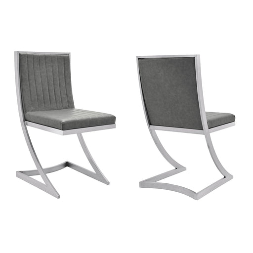 Original price - Original priceOriginal price$520.00$520.00 - $520.00Current price $520.00Bravo Contemporary Dining Chair in Gray Faux Leather and Brushed Stainless Steel Finish - Set of 2