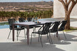 The Fineline and Clip Indoor Outdoor 7 Piece Dining Set in Dark Eucalyptus Wood with Super Stone and Black Rope is a durable and fashionable addition to any indoor or outdoor space. Just the piece for festive alfresco feasts and summertime soirees, this table features a unique tabletop made of a 5-layer composite with 2 layers of cement fiberboard surrounding the aluminum honeycomb core.