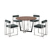 Joana Anastasia 5 Piece Round Walnut Dining Table Set with Brushed Stainless Steel and Charcoal Fabric