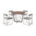 Joana Anastasia 5 Piece Round Walnut Dining Table Set with Brushed Stainless Steel and Light Gray Fabric