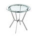 The Naomi Bar Table from is a contemporary piece that adds a touch of pure sophistication to any kitchen, bar, or lounge area, or even a breakfast nook. It features a strong and striking stainless steel x-shaped base, giving it a sleek and stunning visual. The round tempered glass top completes the elegant look, while also contributing to the durability of this piece. This glass and metal dining set is ideal for meals, cocktail hours, card games, and more!