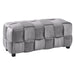 The Armen Living Raven contemporary long ottoman is a unique piece, sure to add novelty and beauty to any modern household. The Raven's rich velvet upholstery features a large weave design that is perfectly accompanied by the ottoman's wooden legs. Ideal for the living room, yet practical enough to fit in just about any room of the house, the Raven is truly a great purchase. The Raven is available in your choice of blue or gray velvet.