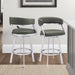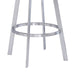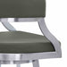 The Saturn 26" Counter Height Swivel Gray Faux Leather and Brushed Stainless Steel Bar Stool from Armen Living is a unique addition to any home or apartment. The Saturn’s soft faux leather upholstery is wrapped around a high-density cushion that cover the back and seat of the kitchen stool, providing you with optimal comfort.