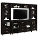 Overhaul your living space with this cappuccino entertainment wall. This wall is constructed with four pieces, including one TV console, two media towers and one bridge. A total of 16 shelving units are available to store your media and decor. Meanwhile, five concealed drawers enhance the organization of your living space. This transitional entertainment wall is suitable for all styles of living spaces with its clean and modern design.