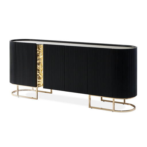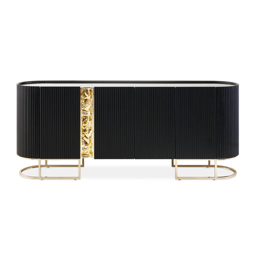 A true masterpiece designed to elevate your living space. Adorned with exquisite curves, this eye-catching piece features a gleaming gold metal sho...