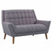 Cobra Mid-Century Modern Loveseat in Dark Gray Linen and Walnut Legs