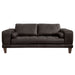 Wynne Contemporary Loveseat in Genuine Espresso Leather with Brown Wood Legs