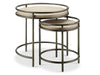 Elevate your space with a stunning collection of mixed media and pulling together a warm modern flare. The rounded shaping of both the frame and metal accents brings a softness to the hard elements. Glass top creates a nice open ambience allowing light to pass through to the wire brushed pine shelf. Play on finish with the natural pine and vintage bronze metal finish creates good contrast directing your eye to flow around the table and see all the details! Standout features include a nesting end table for added convenience and space-saving and a round cocktail table that serves as a centerpiece and and a demilune sofa table that adds a touch of elegance to any entryway. Make a statement in your home with this sleek and stylish collection.