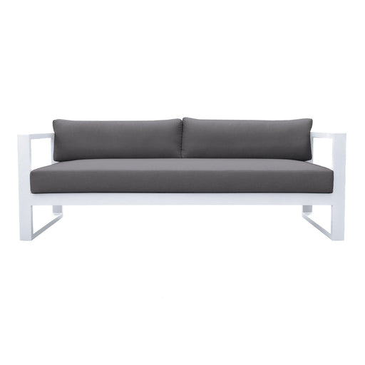 Transform your patio with the Armen Living Aelani Aluminum Outdoor Sofa in Dark Gray and White, perfect for creating a stylish and functional outdo...