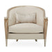 Create the perfect scene with the Villa Cherie Matching Chair. Accented with beautiful crossed rope motifs and upholstered in a softly shimmering Frosted Linen, this piece is ready to tie your gorgeous living room together.