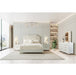 AICO Furniture Palm Gate Dresser in Cloud White 9086050SA-108. The Palm Gate Dresser, featuring Japan gold accents, eight spacious drawers, and stylish double handles, combines practicality with grandeur, creating a striking aesthetic.