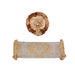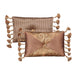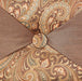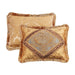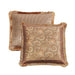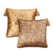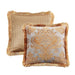 Find your timeless, grandiose style with the Elizabeth Bedding Set by Michael Amini. Made with beautiful spa blue chenille and golden tones with brown accents, this set features embroidered gold silk, a coordinating multi-stripe, paisley accent patterns, and reversible pieces. The comforter reverses to a gold jacquard frame. The adjustable multi-stripe bed skirt is made with a 21-inch drop. All pillows are reversible have hidden zippers and include feather inserts.