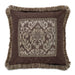 Show off your sophisticated style with the Imperial Bedding Set. This set is crafted with a bronze jacquard frame pattern, diamond pin-tuck reversible euro shams, bed skirt, decorative gimp and brush fringe accents. Featuring a classic antique touch, this bedding design includes decorative pillows with feather inserts, removable covers and hidden zippers. Oversized and overfilled comforter.