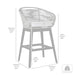 Pair it with wood surfaces for an eclectic boho feel, or with concrete surfaces for a modern retreat. Its sturdy Eucalyptus base is paired with an intricate marine-grade Regatta cord seat and topped with a soft cushion for a lesson in style and comfort. The rounded back gives ample support for lounging in your backyard, home bar, garden terrace, screened in porch, or poolside!