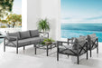 Make the most of your outdoor space with this Armen Living Sonoma Outdoor 4 piece Set in Dark Gray Finish and Dark Gray Cushions! Each piece of this set is crafted to perfection, creating a sleek and clean look with a modern flare. The aluminum exterior frame is UV resistant and helps protect against the effects of inclement weather, while the cushions are waterproof and durable yet comfortable for you and your guests.