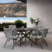 - Oasis Outdoor Patio Dining Table with Gray Superstone Center and Dark Wood Top
