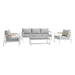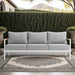 The cushions feature convenient zipper closures for easy removal and cleaning, making maintenance hassle-free. With a sophisticated design available in either a black aluminum finish with dark gray cushions or a white aluminum finish with light gray cushions, the Crown Outdoor Sofa seamlessly blends comfort and style. Perfect for your patio, backyard, or poolside, this outdoor sofa invites relaxation and enhances your outdoor lounging experience.