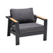 Palau Outdoor Chair in Dark Gray with Natural Teak Wood Accent and Cushions