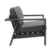 The Armen Living outdoor sofa chair in dark gray with teak wood accent and gray cushions is a novel piece, sure to enhance the beauty of any outdoor space. The Palau is built from aluminum and teak wood in a natural finish. The Palau sofa chair is a modern take on luxury outdoor seating. The plush cushions, upholstered in brushed performance fabric, are treated to be exceptionally resistant to the harshest elements.