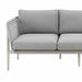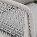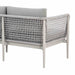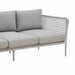 Designed for outdoor durability, the Rhodes Sofa boasts water-resistant and UV-resistant features, standing as a steadfast and stylish seating solution for your patio or garden area. Whether bathed in sunlight or facing unexpected rain, this sofa remains a reliable and eye-catching focal point for your outdoor gatherings. The incorporation of light gray rope detailing adds a unique visual dimension to the design, creating a captivating contrast with the smooth aluminum frame.