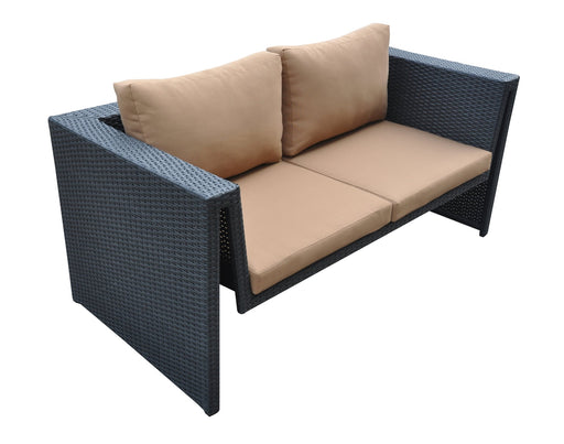 Wicker Loveseat (9/Stack)Features: Transitional Brown/Dark Teal Fabric, Faux Rattan Stacking Design Glass Top w/ Wave Pattern Multi-tone Wicker Rem...
