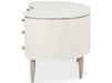 - Trim, drawer pulls and reeded feet are finished in platinum