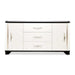 AICO Furniture Tuxedo Sideboard in Piano Keyboard 9087007SA-832. Crowned with a sleek marble inlay, the Tuxedo sideboard combines exquisite aesthetics with practical design. The elegant white surface is complemented by spacious cabinets and drawers, including discreet side storage that seamlessly blends with the unit's sophisticated silhouette. Inside, a silverware tray adds a thoughtful touch, ensuring your finest pieces are stored with the care they deserve. Whether hosting a gala or a quiet family dinner, the Tuxedo Sideboard stands as a symbol of gracious living.