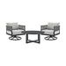 • SET INCLUDES - This 3 piece patio furniture set includes 2 swivel rocking lounge chairs and 1 coffee table.