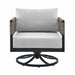 Alegria and Menorca 3 Piece Patio Outdoor Swivel Seating Set in Black Aluminum with Gray Rope and Cushions