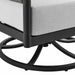 The Alegria and Menorca 3 Piece Patio Outdoor Swivel Seating Set in Black Aluminum with Gray Rope and Cushions is a perfect addition to your backyard, patio, pool area, or screened in porch. The modern and clean line silhouette of the outdoor swivel rocking chairs is complemented by unique woven rope arms. The rope is treated to be protected from water, UV, oil, and fading.