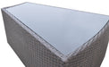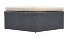 The Armen Living Barbados 9 piece outdoor patio set is the perfect luxury collection for the contemporary household patio. This exquisite set features three sectionals, three end tables, and a middle ottoman comprised of three triangular pieces. Featuring a 100% waterproof black powder coat finished wicker design, the Barbados offers an exceptional degree of support and assures durability.