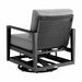 The Cayman 5 Piece Black Aluminum Outdoor Swivel Seating Set with Dark Gray Cushions is the ideal addition to any outdoor space. The strong black aluminum frame is modern in style and convenient in function, its swivel mechanism allows for optimal movement. The beautiful dark Gray upholstery is UV and water-resistant holding up against even the harshest of elements. The zipper closure on the cushions makes clean up a breeze!