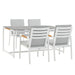 Crown 5 Piece White Aluminum and Teak Outdoor Dining Set with Light Gray Fabric