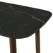• Sintered stone top, walnut-finished wood, and charcoal fabric combine to create a rich, modern palette with textural contrast.