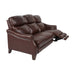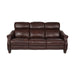 - COLOR VARIATIONS - This power reclining sofa is available in your choice of chocolate brown or silver leather upholstery.