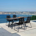 Enjoy a modern outdoor space with the Frinton and Shasta 5 Piece Dining Set in Eucalyptus and Metal with Rope. This 5-piece dining set includes our Frinton rectangle 71-inch patio dining table and 4 of our Frinton/Shasta rope and steel stackable dining chairs. The mix of materials create depth and texture that mesh well with the natural outdoor surroundings. Modern and inviting, our patio dining table combines the warmth of wood with the hardiness of metal.