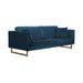 Lenox Blue Velvet Modern Sofa with Brass Legs
