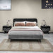 - The bed features a low-profile design with an elegant fabric upholstered headboard, while the nightstands feature spacious drawers for your storage needs