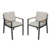 The Nofi chairs feature water, chemical, fade resistant, and foam padded olefin upholstery as well as teak arm accents. The Nofi table features a beautifully paneled teak wood top, complementing the chairs perfectly. The Nofi outdoor patio set is an excellent choice and seats up to 6 people.