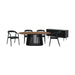 The Pasadena Apache 6 Piece Oval Dining Set comes complete with the Apache Black Oak Wood and Faux Leather Dining Chairs, the Pasadena 4 Door Wood Buffet Cabinet with Black Oak Finish and one of 2 different color variations for the Pasadena table. This oval dining table is available in an all-black oak finish, or a walnut tabletop finish with a black base to suit any room.