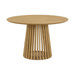 As versatile furniture pieces, these dining chairs transcend their traditional role, doubling as smart accent chairs or chic additions to your vanity. The ergonomic design ensures comfort during meals, providing both flexible support and style, while the open back and paper cord create a chair with unparalleled breathability. The 47-inch Round Pasadena Table is a chic and versatile addition that effortlessly blends style and functionality in your indoor living spaces.