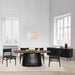 Use it as a stylish sideboard, an entry cabinet that welcomes guests with its polished charm, or a versatile storage cabinet in the kitchen. Elevate your dining experience with the Pasadena Erie dining table set. This dining set is available in multiple color variations including: a black oak finish with black chairs and buffet or a walnut tabletop with complementary black finish on the base, chairs, and buffet.
