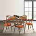 Santana 7 Piece Round Walnut Wood Dining Table Set with Orange Fabric