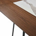 At the center of the table, the sintered stone inlay mimics the refined look of marble with soft veining and a luxurious matte finish — but with significantly greater durability. Highly resistant to heat, stains, and scratches, the surface is perfect for everyday meals, special occasions, and everything in between. The surrounding walnut-toned wood provides an earthy contrast that warms the table’s overall aesthetic while complementing a wide range of interior color palettes.