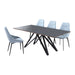 The Armen Living Urbino and Castle modern dining set is as versatile as it is inviting. The sleek, Matte Black Metal finished Urbino is brilliantly paired with the pleasing energy resonating from the Castle's practical shape and inviting blue fabric upholstery. The Urbino's beautiful dark Gray and walnut top brilliantly plays with the blue, creating an atmosphere of calm, relaxation, and joy.