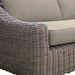 The taupe cushions of this 4 piece patio furniture set feature a convenient zipper closure that makes for easy removal and cleaning. The coffee table from this outdoor furniture set is constructed from acacia wood which is extremely dense and durable. Acacia is weather resistant and does not absorb much moisture which makes it a great wood for an outdoor furniture set. Especially in wet or humid climates, it is also rich in natural oils that help prevent rot.