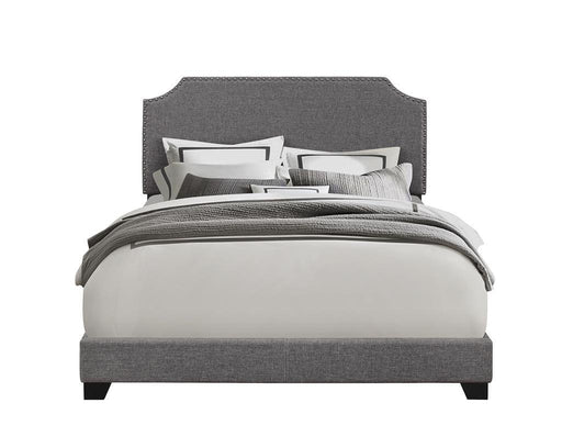 Part of RIGHT2HOME Product Collection Stone finish Clip corner design on headboard Brushed nickel finished nail head trim Low profile style footbo...