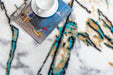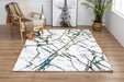 This Luxury collection polyester area rug is designed with an abstract marble print pattern to give it depth and character in contemporary designs. It features machine made construction and a tape edge finish. This 100% stain proof rug will be the perfect enhancement to your living space. Abstract marble print pattern 100% Polyester front Grey cotton backing Pile Height: 0.98 inches Machine Made Pile Height: 0.98 inches Taped Edge